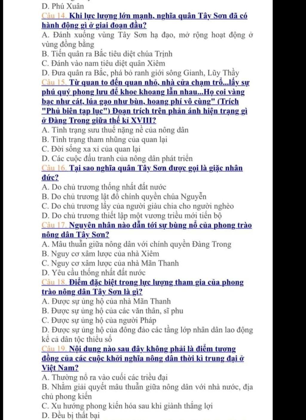 giải thích : Khi lực lượng đã mạnh, nghĩa quân Tây Sơn đánh xuống Tây Sơn hạ đạo, lập căn cứ ở Kiên Mĩ, (Tây Sơn- Bình Định) rồi mở rộng hoạt động xuống vùng đồng bằng. Nghĩa quân "lấy của người giàu chia cho người nghèo", xóa nợ cho nông dân và bãi bỏ nhiều thứ thuế