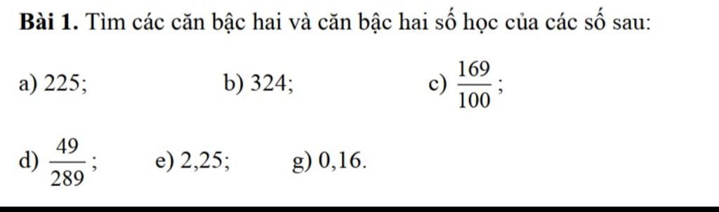 `text(Lưu ý : Căn đầu tiên là căn bậc hai ; căn thứ hai là căn bậc hai số học)`