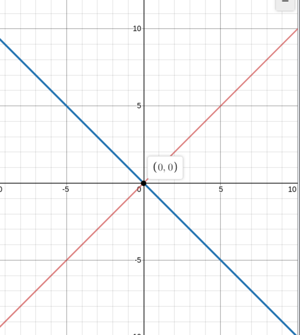 $y=-x$: màu xanh : nằm trong góc phần tư thứ II, IV