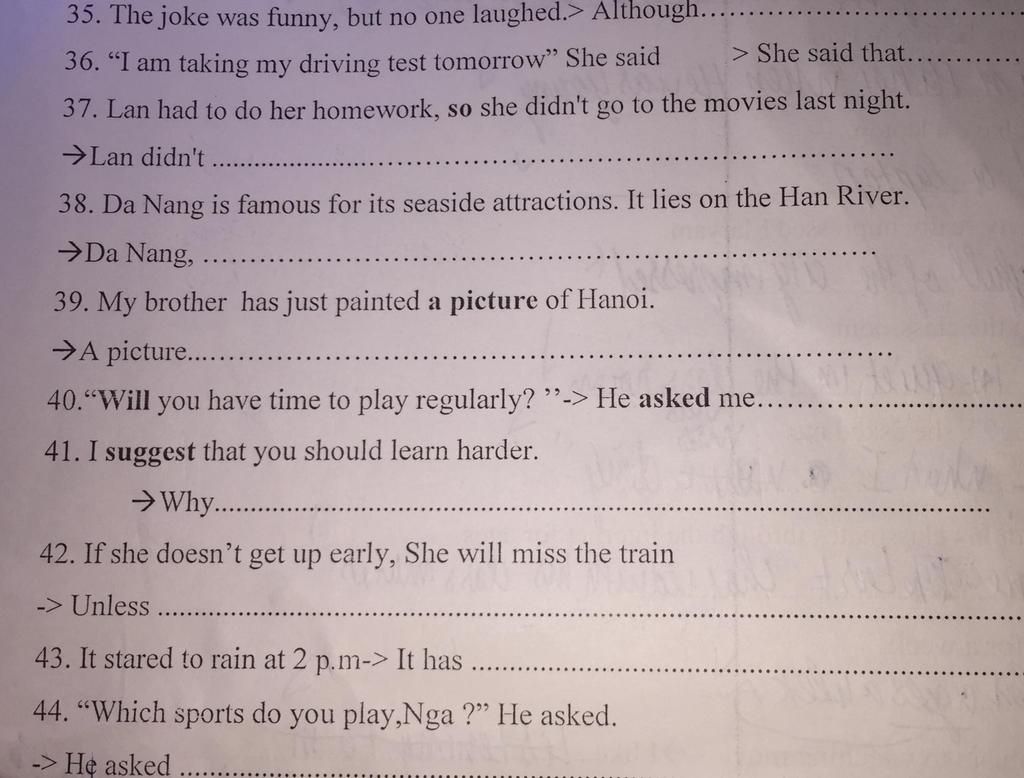 37. Lan didn't go to the movies last night because she had to do her homework.