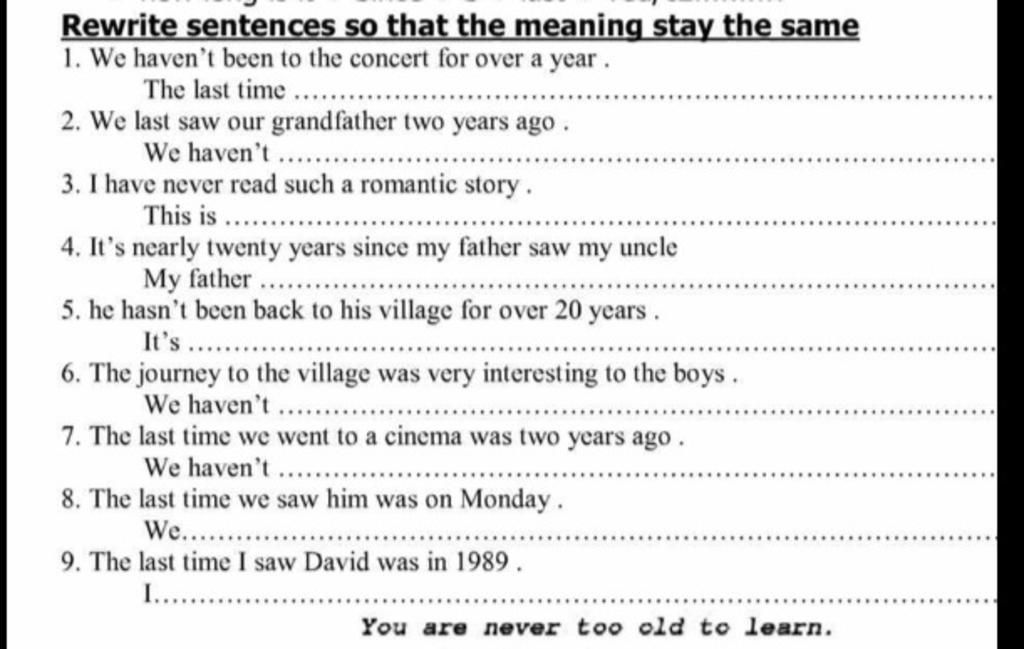 4.→ My father hasn't seen my uncle for nearly twenty years.