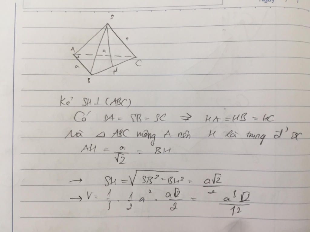 Giải thích các bước giải: Đối với những bài này đường cao kẻ từ S xuống sẽ trùng với trung điểm của BC