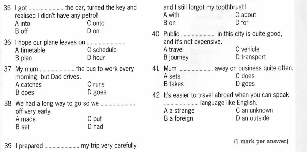 37 phải là A nhé, catches the bus ko phải goes the bus