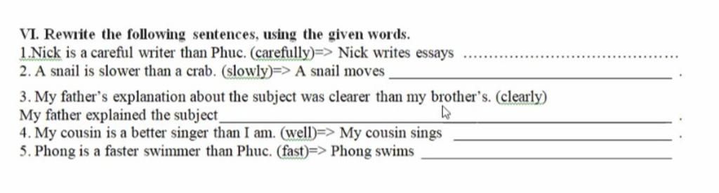 1. Nick writes essays more carefully than Phuc.
