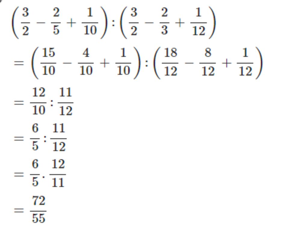`( 3/2 - 2/5 +1/10) : (3/2 - 2/3 + 1/12)`