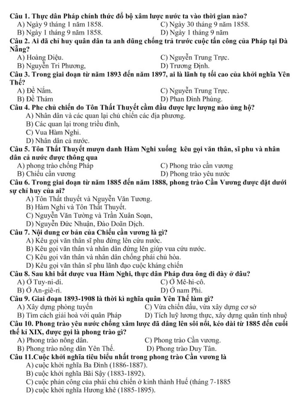 Câu 7: B. Kêu gọi văn thân và nhân dân đứng lên giúp vua cứu nc