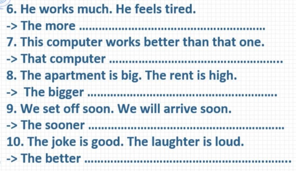 6. The more he works, the more tired he feels.
