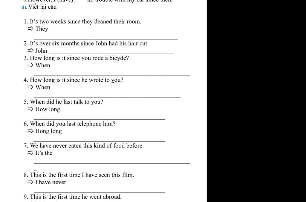 Đọc kỹ những từ được cho sẵn trong câu Biến Đổi. Đây là lúc vận dụng những cấu trúc đã học, những công thức đã được dạy trong khóa học Video này, và áp dụng viết lại câu có cấu trúc khác mà vẫn giữ được ý nguyên vẹn của câu Gốc.