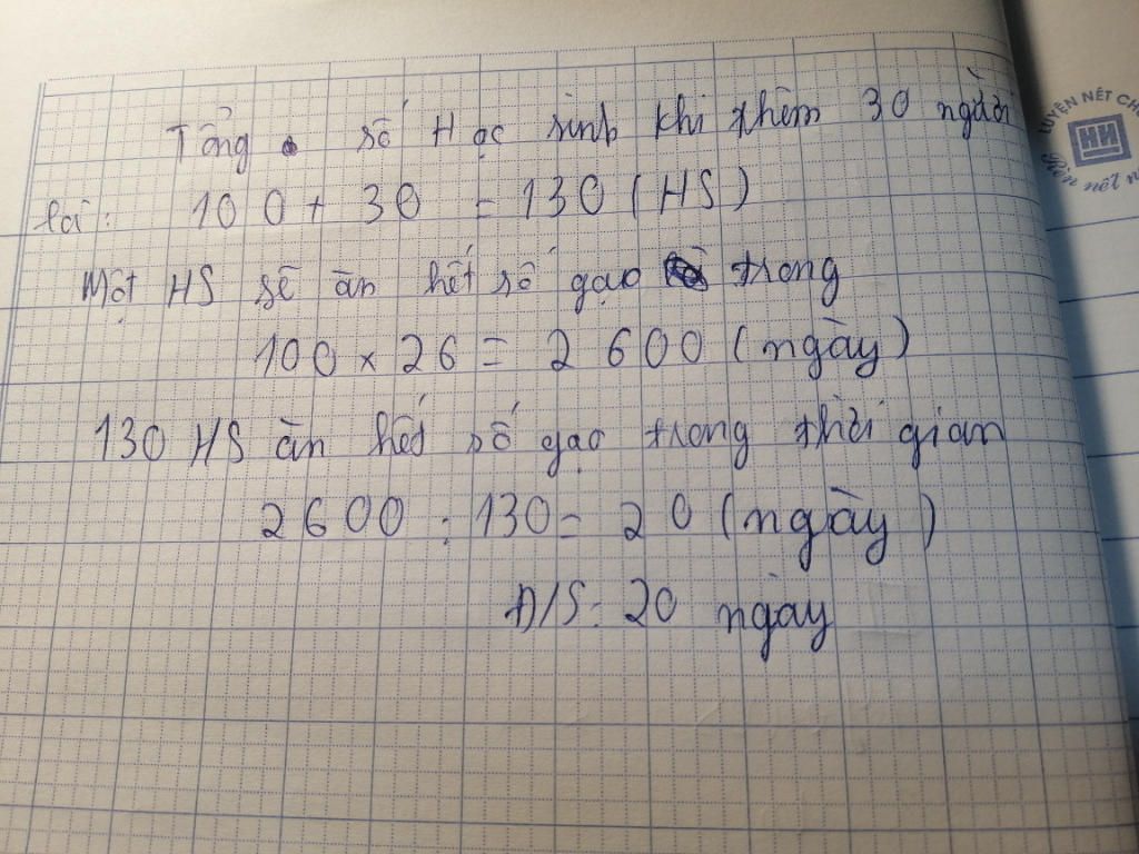 Một học sinh sẽ ăn hết số gạo dự trữ trong số ngày là :