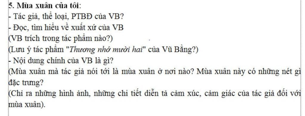 + "Mùa xuân của tôi " trích thiên tùy bút “Tháng giêng mơ về trăng non rét ngọt” trong tùy bút - bút ký " Thương nhớ mười hai " của tác giả Vũ Bằng .