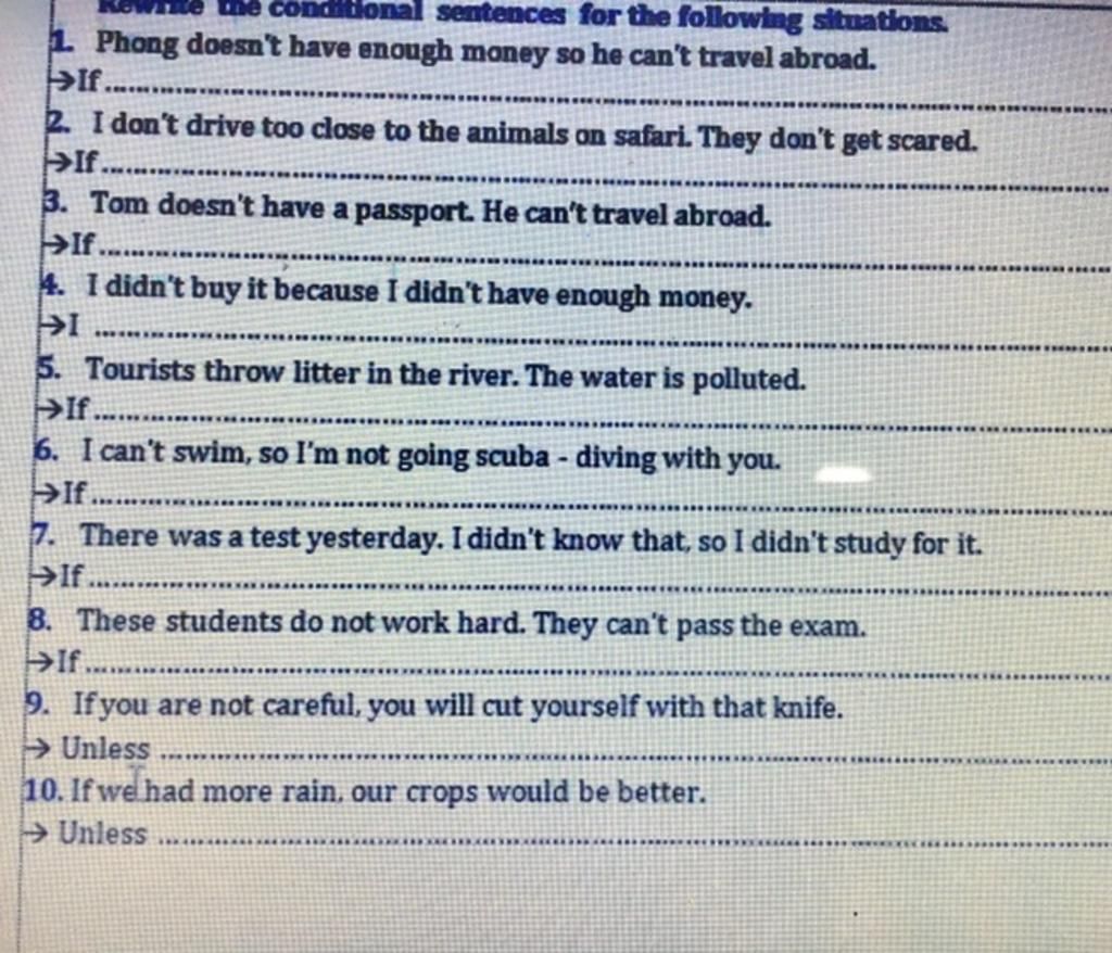 5. If tourists didn't throw little in the river, the water wouldn't be polluted (l câu đk oại 2)