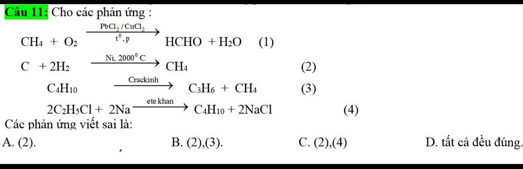 ta thấy phương trình đúng với nhiệt độ cao và chất xúc tác là Ni