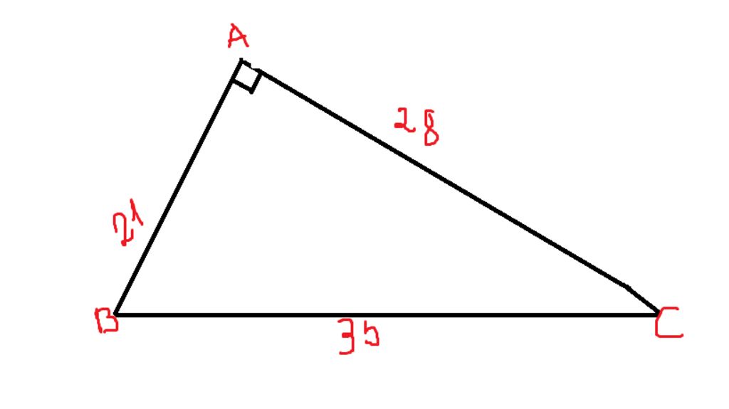 b) `sin` `\hat{B}`= $\frac{AC}{BC}$ =$\frac{28}{35}$ = $\frac{4}{5}$