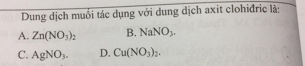 Muối `AgNO_3` tác dụng được với `HCl` vì: muối `AgNO_3` tham gia phản ứng với `HCl` tạo kết tủa