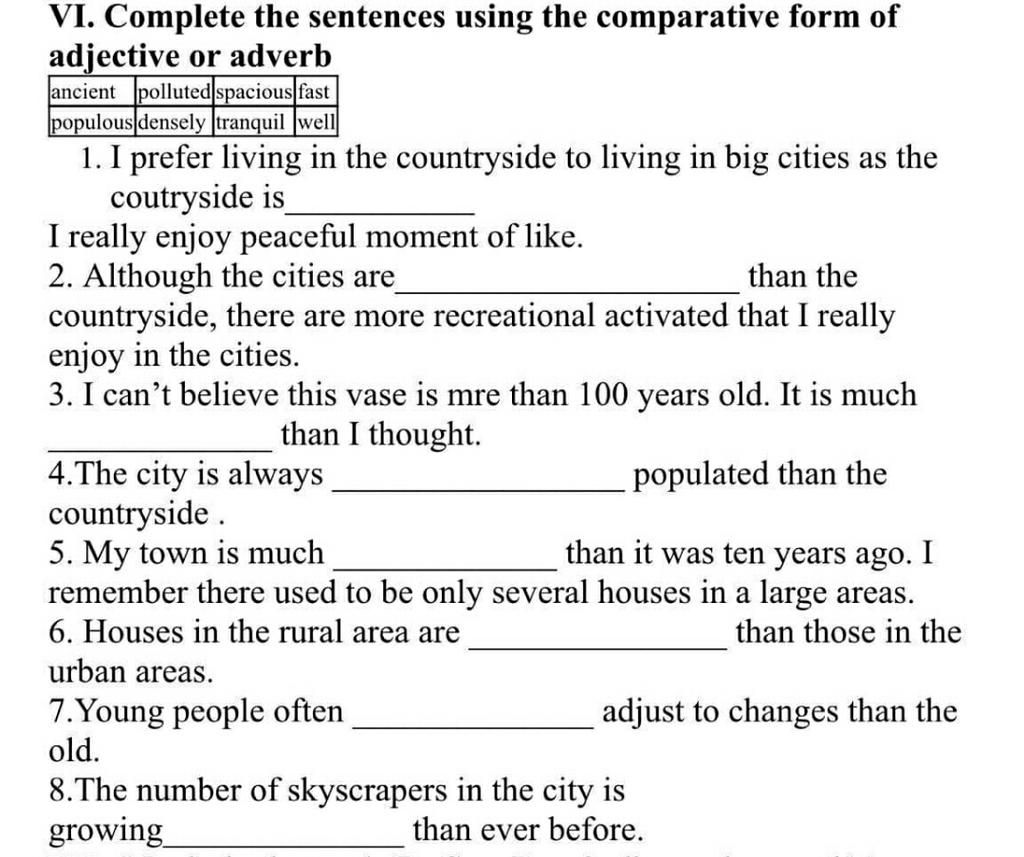 VI. Complete the sentences using the comparative form of