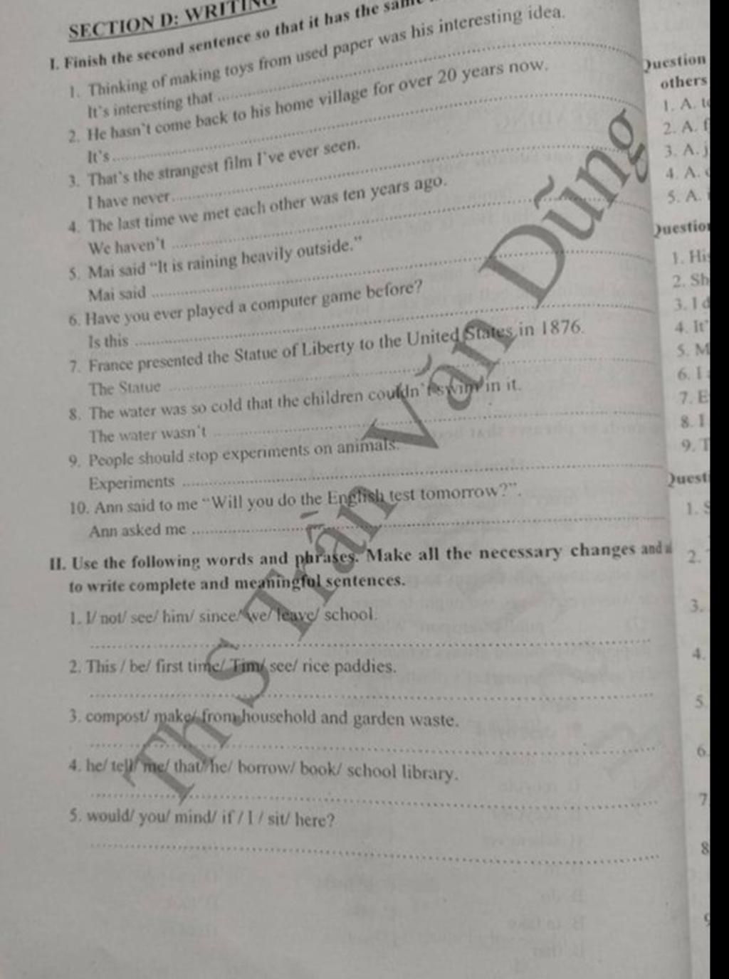 10 ann ask me if i would done the English test the following day