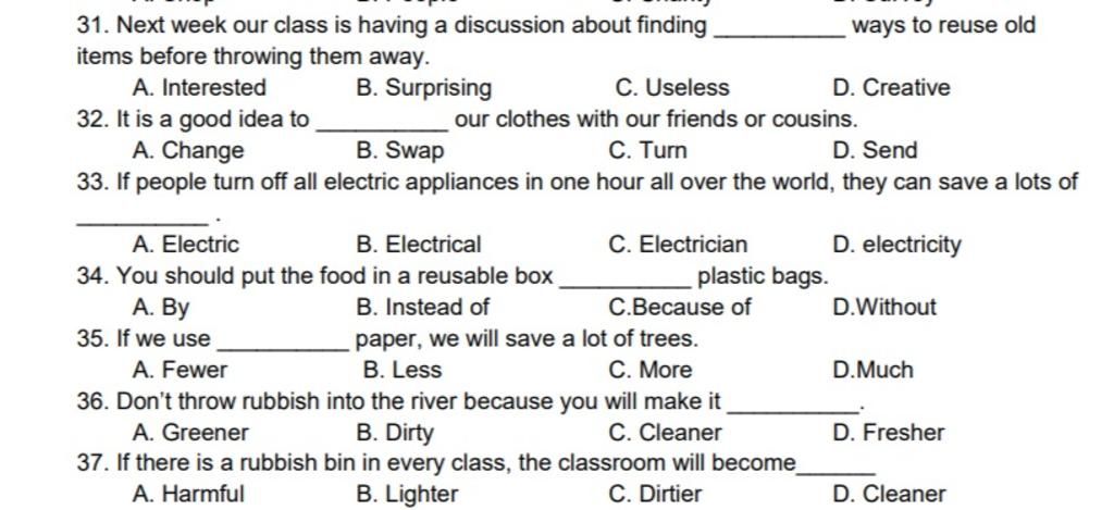 37C Nếu có rác trong mỗi lớp học thì lớp học sẽ bẩn hơn