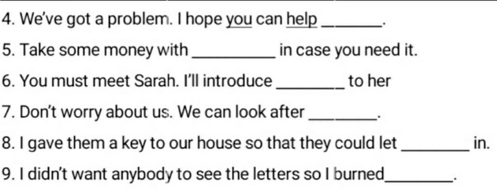 -> Tạm dịch: tôi đưa họ chìa khoá nhà của chúng ta để họ có thể tự vào nhà.