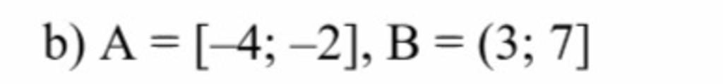 $A=[-4;-2],B=(3;7]$