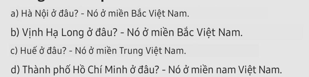 a) Where's Ha Noi ? - It's in north Viet Nam.