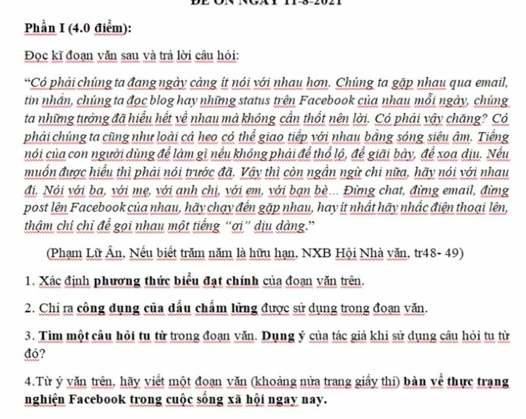 Hiện nay, thế giới đang bước sang một chương mới đó là thế giới của công nghệ 4.0 . Việt Nam ta cũng nằm trong các nước sử dụng công nghệ 4.0. Công nghệ thông tin ngày càng phát triển. Nhiều sản phẩm mạng được ưa chuộng như: Facebook, Zalo, Twitter, Instagram,... Vì thế giới trẻ hiện này lẫn cả những thế hệ trước đều chỉ trò chuyện qua tin nhắn, mạng xã hội. Mà không nói cho nhau một câu an ủi, khen thật lòng mà chỉ là dòng tin nhắn lạnh lùng qua Facebook. Chúng ta đi ra ngoài đường đặc biệt là ở thành phố, các bạn trẻ ai ai cùng sắm cho mình một chiếc điện thoại vừa đi vừa nhắn. Tại sao các bạn lại phải lạm dụng đến như vậy? Cho dù là cả hai đang ở trước mặt nhau nhưng vẫn sử dụng tin nhắn. Mọi người đang dần bị mạng xã hội điều khiển mà đã quên đi cách nói lời yêu thương.