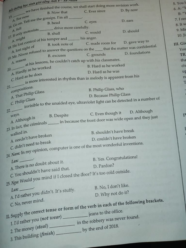 Bồi dường học sinh giỏi tiêng Anh 8 – AH