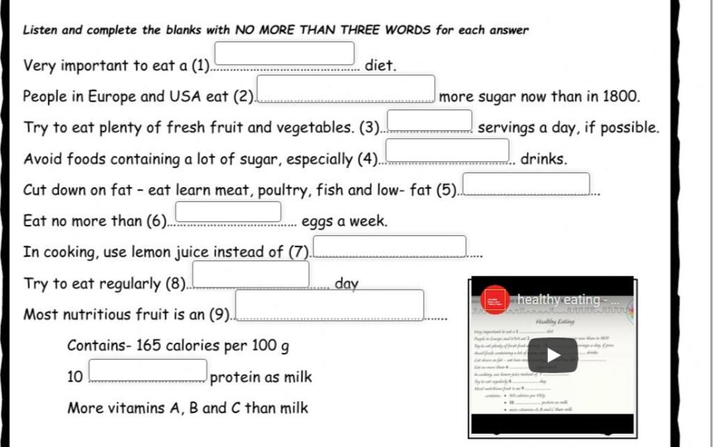Listen and complete the blanks with NO MORE THAN THREE WORDS for each answer