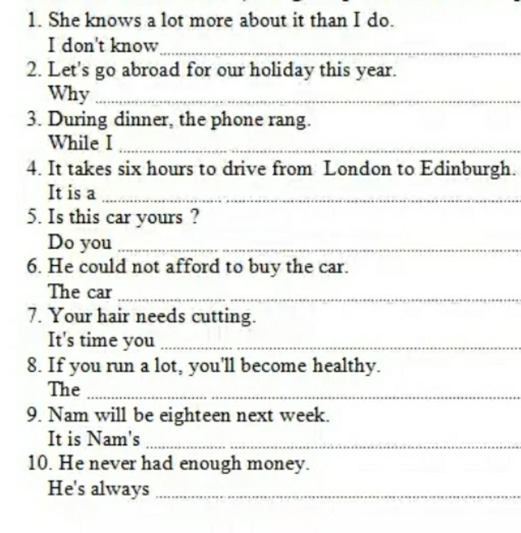 6, Chiếc xe quá đắt đối với anh ta để mua.