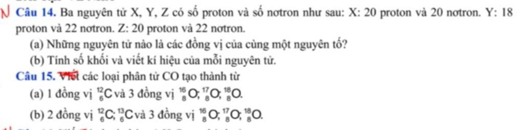 X và Z có cùng số proton => là đồng vị của cùng 1 nguyên tố.