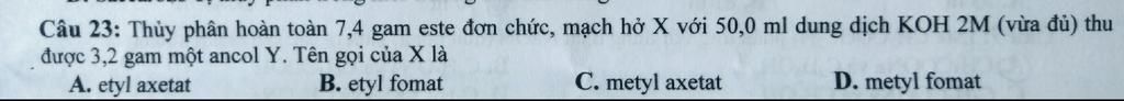 $\to X$ là $C_3H_6O_2$ (este no đơn hở)