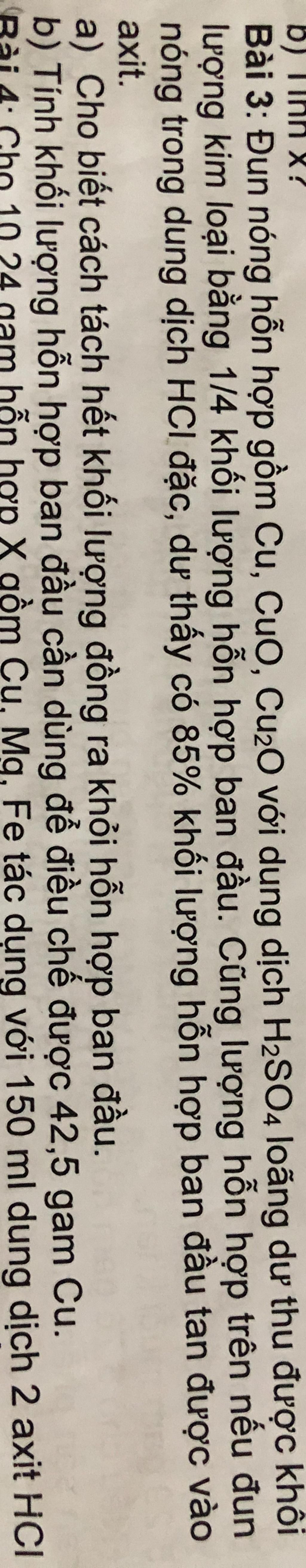 Bài 3: Đun nóng hỗn hợp gồm Cu, CuO, CU2O với dung dịch H2SO4 loãng dư thu được khôi