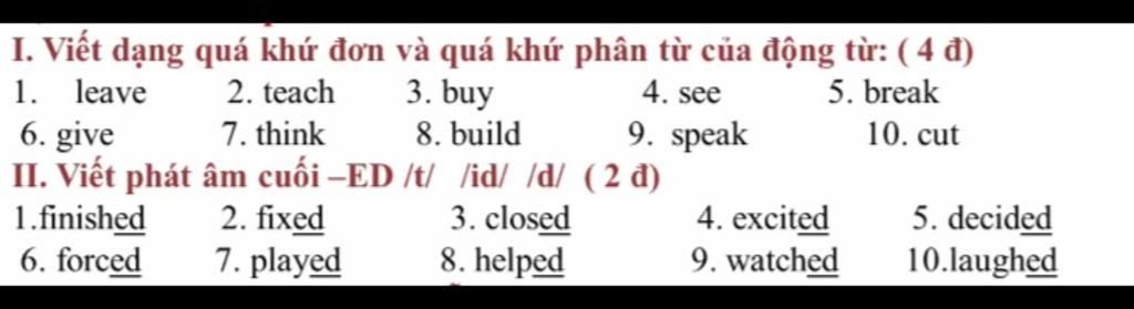 phát âm là /id/:động từ có phát âm kết thúc /t/ hay /d/.