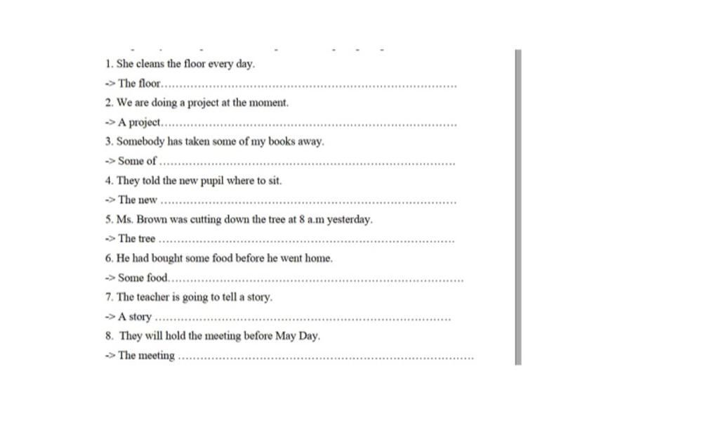 5.The tree was being cut down By Mr.Brown at 8 a.m yesterday