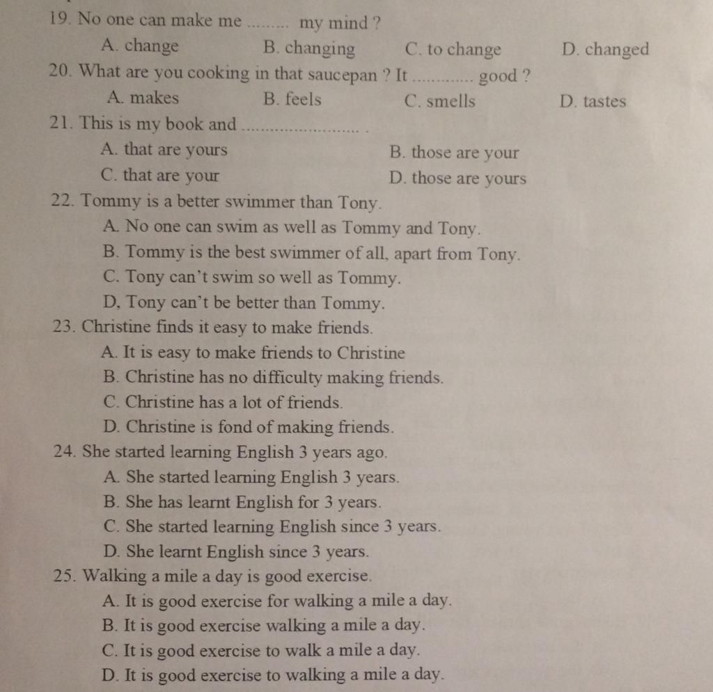 23. C ( Christine có nhiều bạn = Christine biết cách kết bạn dễ dàng )