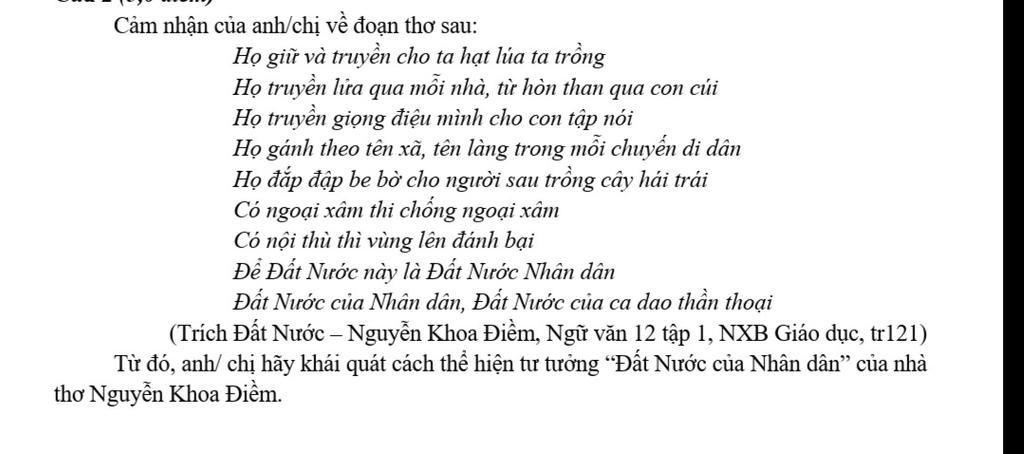 Cảm nhận của anh/chị về đoạn thơ sau: