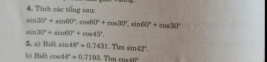 5)a)\sin {42^0} = \cos \left( {{{90}^0} - {{42}^0}} \right)\\