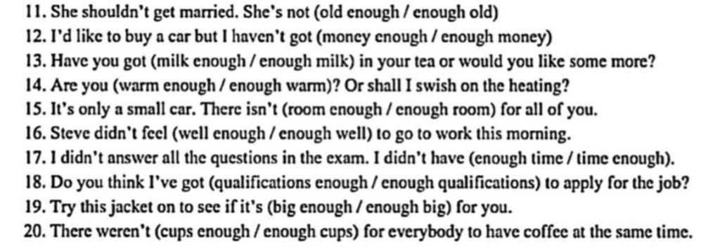 -> adj / adv + enough