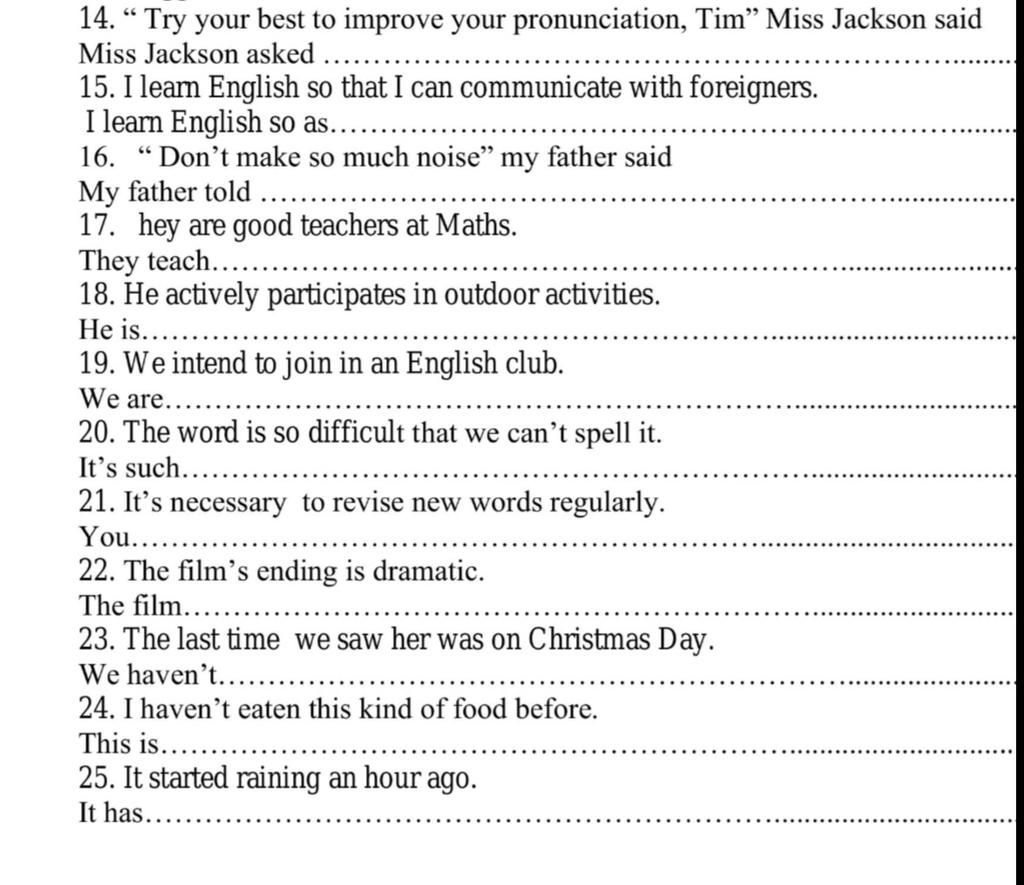 14. “ Try your best to improve your pronunciation, Tim" Miss Jackson said