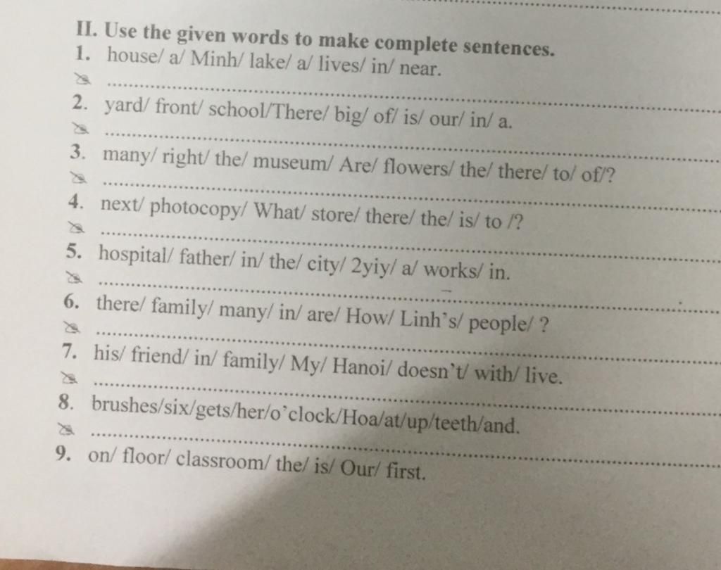 `5`. My father works in a hospital in the city. (Câu này đề sai chính tả)