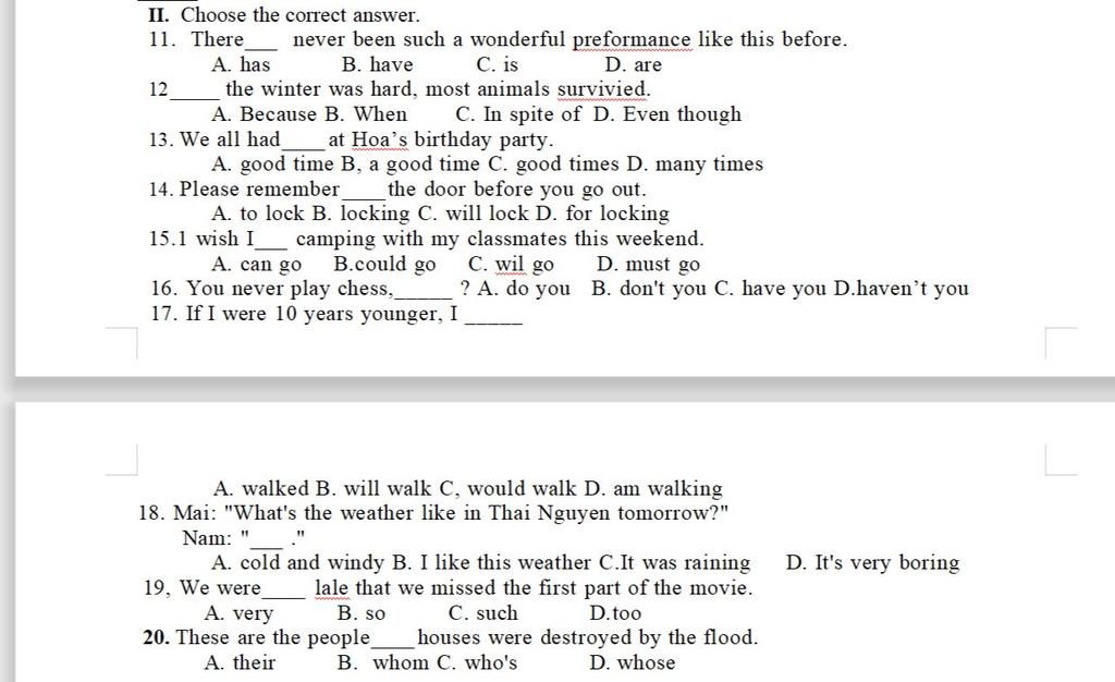 $\text{→}$ Althoug/ Though/ Even though + S + V