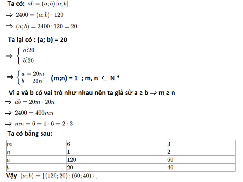 Vậy suy ra ƯCLN(a,b) = 2400 : 120 = 20(c = 20)