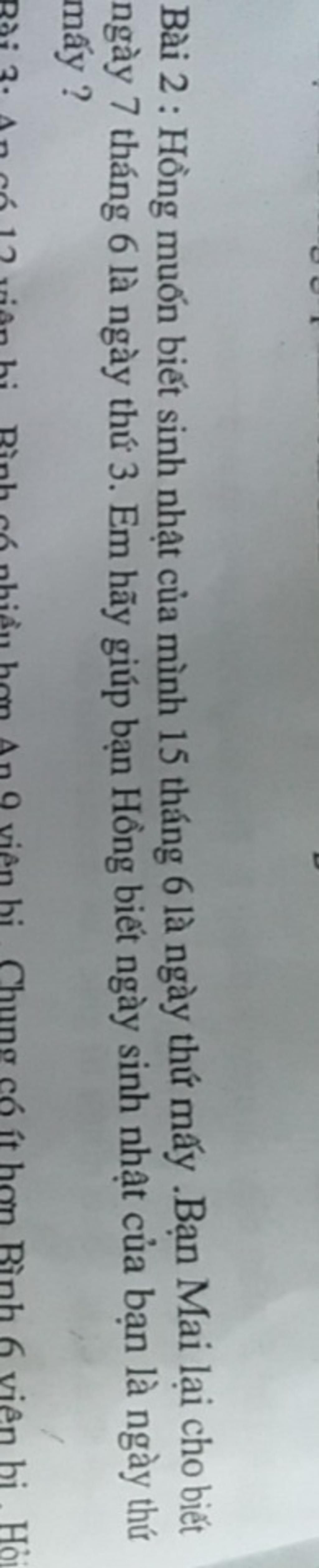 `1` tuần có `7` ngày `=>` Sinh nhật Hồng là thứ tư