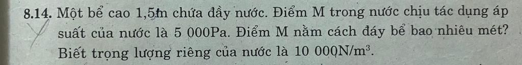Áp suất của nước lên 1 điểm cách đáy bể 0,5m là: