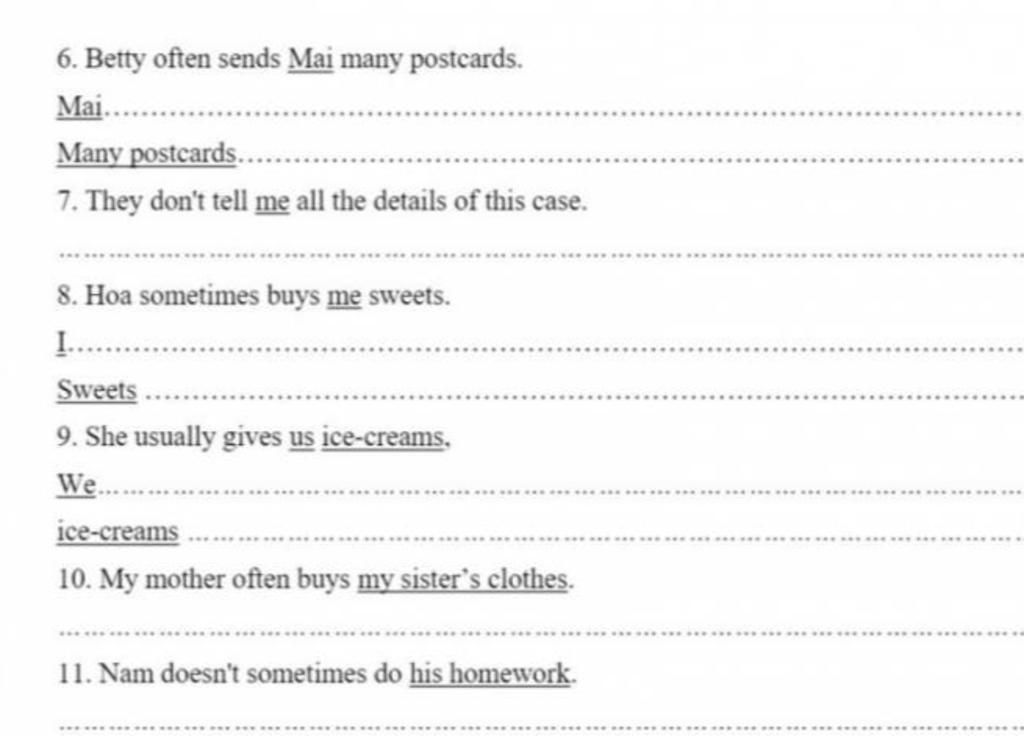 8. I am sometimes bought sweets by Hoa. ( S+am/is/are+V3/ed)
