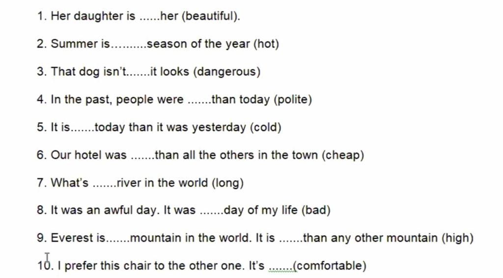 Cấu trúc câu so sánh nhất với tính từ ngắn: