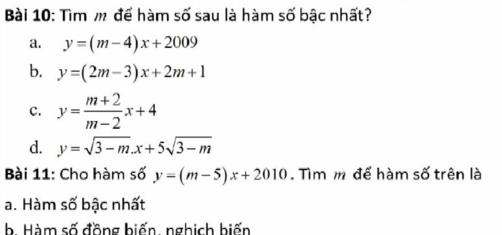 Vậy `m \ne 5` thì hàm số là hàm bậc nhất