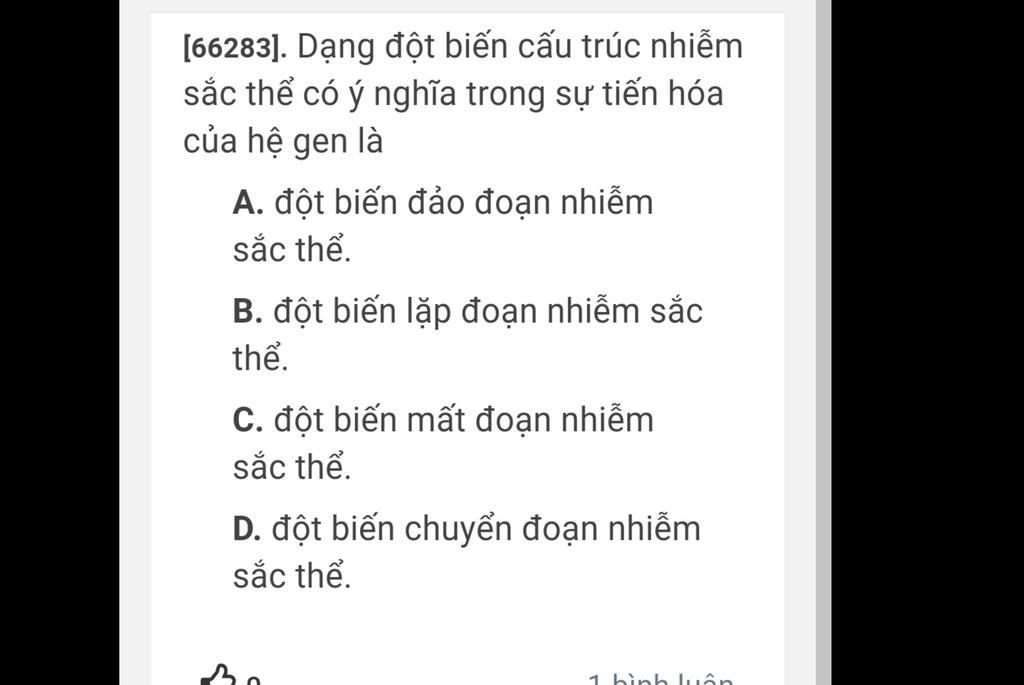 -> Lặp đoạn có ý nghĩa đối với tiến hóa của hệ gen -> Đáp án B
