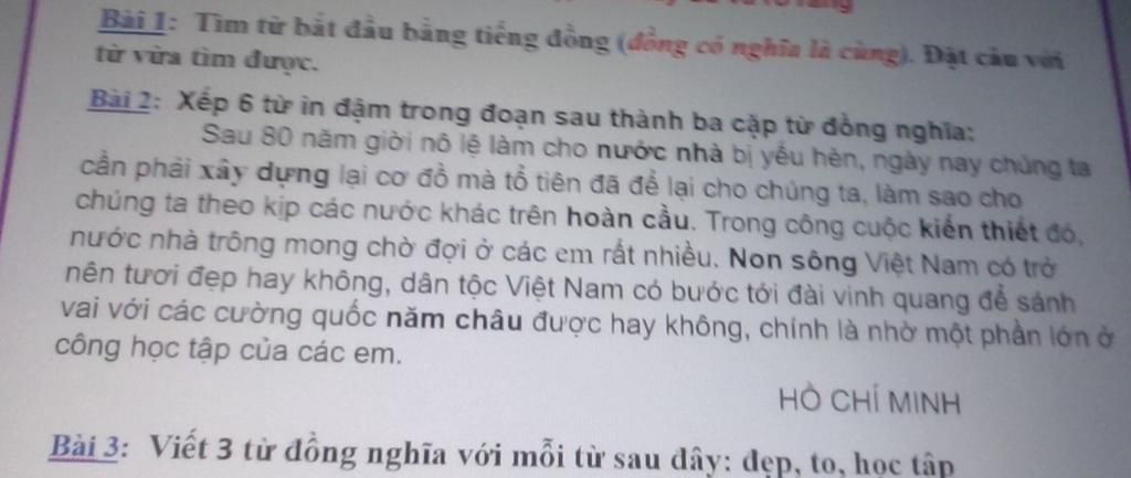Ba từ đồng nghĩa với mỗi từ sau `:`