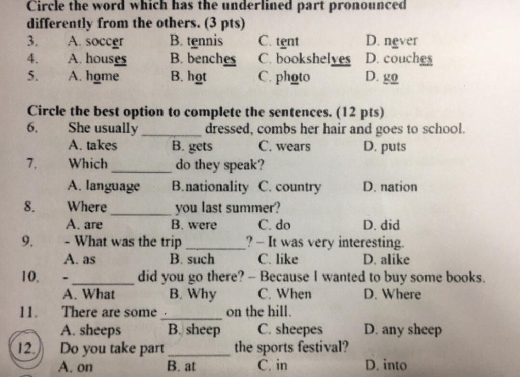 `3`.A(Phát âm /ə/ còn lại là âm /e/)