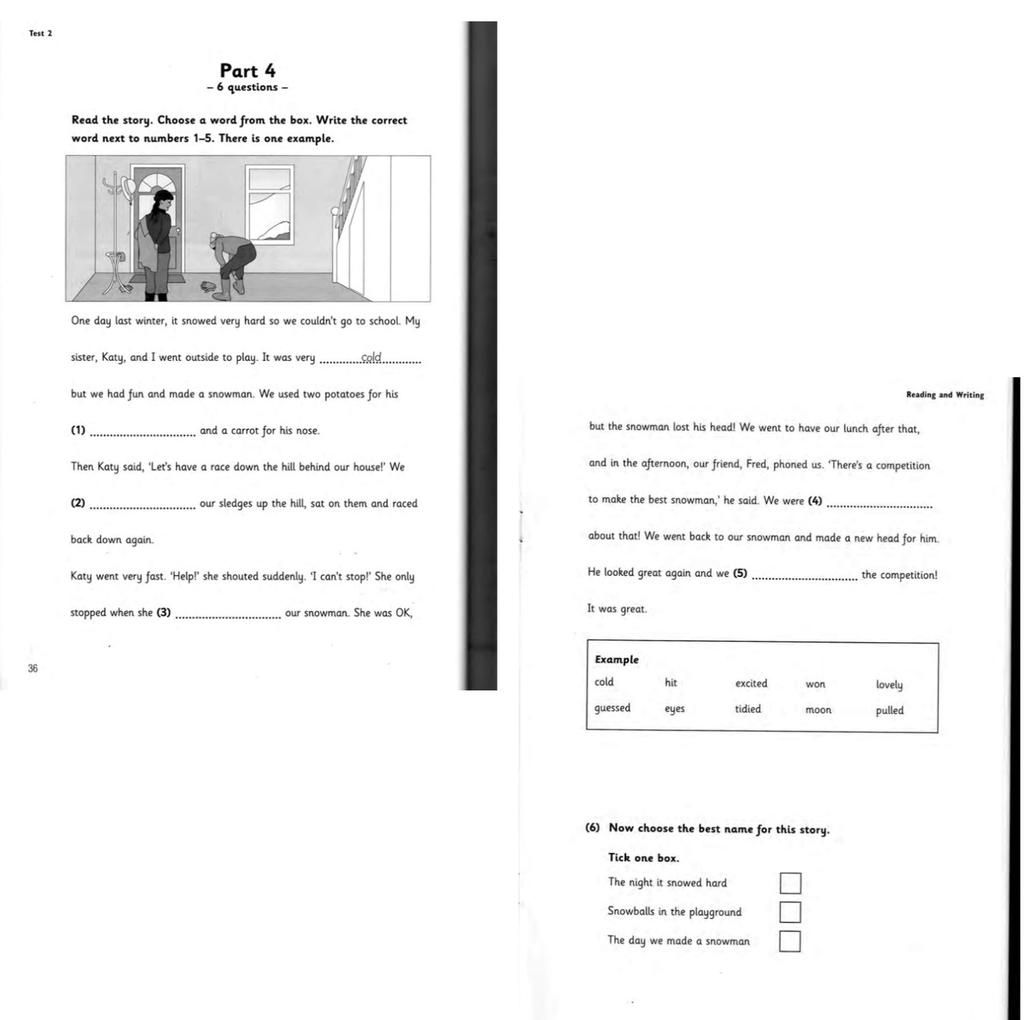 $\text{Tiêu đề tốt nhất cho câu chuyện là "Ngày chúng tôi làm một người tuyết")}$